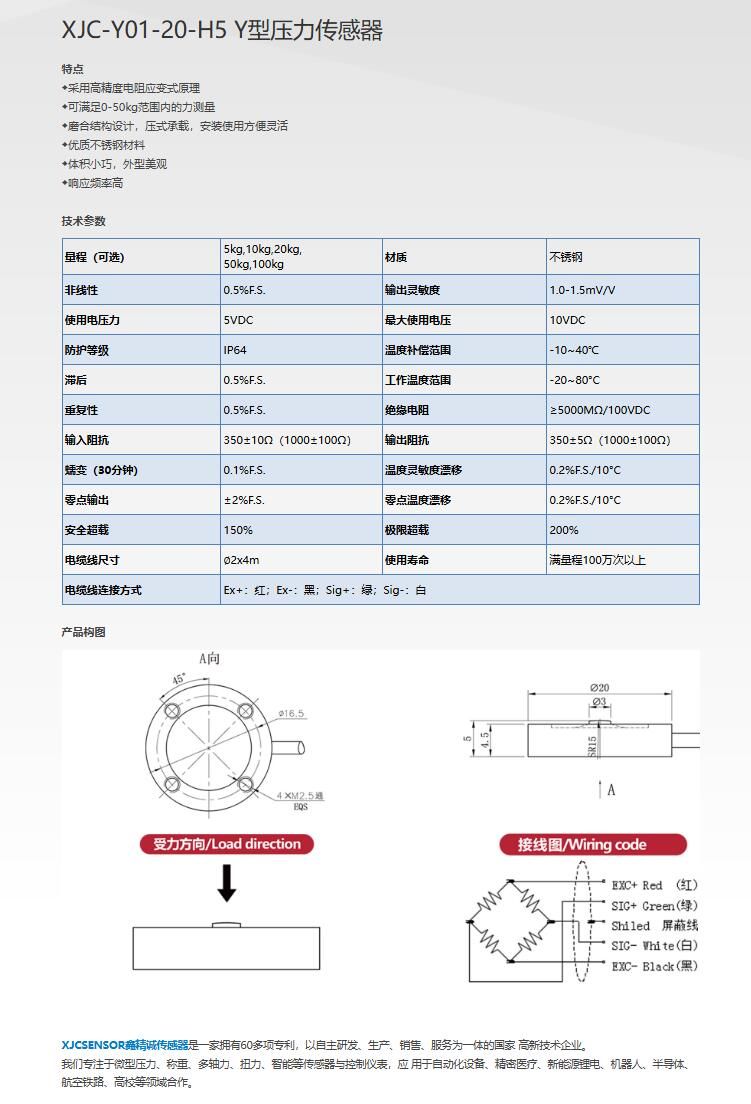 鑫精诚膜盒压力传感器XJC-Y01-20-H5 Y型压力传感器