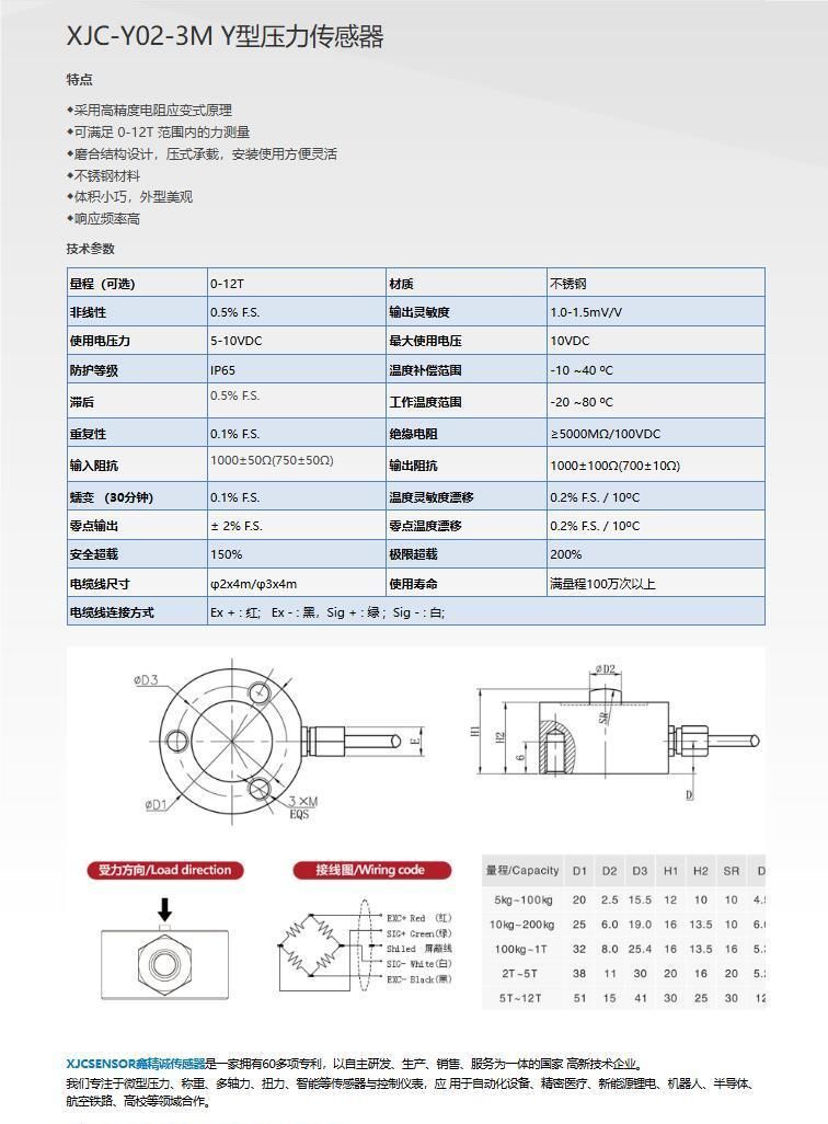 XJC-Y02-3M Y型压力传感器